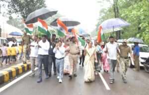 उप दंडक श्री विजयभाई पटेल के नेतृत्व में सुबीर में निकाली गई “तिरंगा यात्रा”…राजेश भाई एल पवार,राज्य संवाददाता गुजरात,Key Line Times तिरंगा हुआ सुबीर गांव यात्रा ने प्रमुख मार्गों पर जन जागरूकता जागृत की गुजरात राज्य अहवा : डांग जिले के सुबीर में विधान सभा के उप मुख्य आरक्षी श्री विजय भाई पटेल की अध्यक्षता में “तिरंगा यात्रा” निकाली गई। जुलूस हाथ में तिरंगा झंडा लेकर राजकीय माध्यमिक विद्यालय सुबीर से बिरसा मुंडा सर्किल पहुंचा। अधिकारी, पदाधिकारी और छात्र-छात्राएं जनजागरूकता के लिए तिरंगे झंडे के साथ मुख्य मार्गों पर निकले। गौरतलब है कि 8 से 12 अगस्त तक राज्य भर में ‘हर घर तिरंगा’ कार्यक्रम के तहत विभिन्न कार्यक्रम आयोजित किये जा रहे हैं। जिसमें ट्राइकलर सेल्फी, ट्राइकलर ओथ, ट्राइकलर कैनवस, ट्राइकलर ट्रिब्यूट, ट्राइकलर मेला और ट्राइकलर रन जैसे कार्यक्रम आयोजित किए जा रहे हैं। पुलिस बैंड सुरावली के साथ सुबीर की तिरंगा यात्रा में उप दंडकश्री, जिला पंचायत अध्यक्ष श्रीमती निर्मलाबेन गाइन, राज्य जनजाति मोर्चा मंत्री श्री सुभाषभाई गाइन, कलेक्टर श्री बी.बी. चौधरी, दक्षिण डांग वन प्रभाग के उप वन संरक्षक श्री रवि प्रसाद, डिप्टी शामिल थे। वन संरक्षक उत्तर श्री दिनेश रबारी सहित अधिकारी, जिला शिक्षा अधिकारी श्री जिग्नेश त्रिवेदी, भाजपा अध्यक्ष श्री किशोरभाई गावित सहित पदाधिकारी, ग्रामीण, 500 से अधिक स्कूली छात्र शामिल हुए। रिपोर्ट राजेसभाई एल पवार