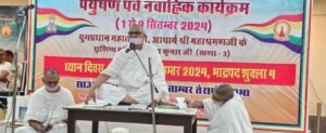 साउथ हावडा मे पर्युषण पर्व का सांतवा दिन ध्यान के रुप में मनाया….सुरेंद्र मुनोत, ऐसोसिएट एडिटर, Key Line Times साउथ हावड़ा, आचार्य श्री महाश्रमण जी के सुशिष्य मुनि श्री जिनेश कुमार जी ठाणा-3 के सान्निध्य में प्रेक्षा विहार में पर्युषण पर्व का सातवां दिन ध्यान दिवस के रूप में साउथ हावड़ा श्री जैन श्वेताम्बर तेरापंथी सभा द्वारा आयोजित किया गया। इस अवसर पर उपस्थित जनसमुदाय को संबोधित करते हुए मुनि श्री जिनेशकुमार जी ने कहा – आत्म शुद्धि के दो उपाय है. स्वाध्याय और ध्यान । ध्यान एक नई स्फूर्ति देता है। ध्यान जीने की कला है और जीवन का मूल्यवान पक्ष है। ध्यान के द्वारा किसी को साधा जा सकता है। ध्यान साधान है।, साध्य नहीं है। साध्य तो मोक्ष है। ध्यान के समान कोई पाप का शोधन करने वाला नहीं है। ध्यान आभ्यन्तर तप है। ध्यान संजीवनी बूटी है। ध्यान से देह की, गेह की, स्नेह की आसक्ति दूर होती है। विचारों में अनाग्रह का भाव आता है। ध्यान से व्यक्ति के जीवन में असंग्रह की भावना पैदा होती है। आचरण में अहिंसा का विकास होता है। ध्यान से शारीरिक, मानसिक, भावनात्मक स्वास्थ्य की प्राप्ति होती है। ध्यान में एक ध्यान है- प्रेक्षा ध्यान। प्रेक्षाध्यान ज्योति है, प्रकाश है। गहराई से से देखना ही प्रेक्षाध्यान है। योगों का स्थिरीकरण ध्यान है। मुनिश्री ने आगे कहा आज की भाषा में ध्यान के पांच हेतु है। तनाव मुक्ति मन: प्रसाद, संवेग नियंत्रण, संतोष, अन्तर्दृष्टि का जागरण है। ध्यान का जन्म कषाय, आसक्ति के त्याग से व्रत नियम धारणा व इन्दिय और मन के विजय से होता है गुरुदेव तुलसी की सन्निधि में आचार्य श्री महाप्रज्ञ जी ने प्रेक्षाध्यान का शुभारंभ किया। ध्यान दिवस पर इतना ही कहना चाहता हूं सभी भाई बहिन प्रेक्षा ध्यान की साधना के द्वारा जीवन को रुपान्तरित करें। मुनि श्री परमानंदजी ने पौषध व्रत के बारे में बताते हुए पौषध की प्रेरणा दी। इस अवसर पर बाल मुनिश्री कुणाल कुमार जी ने सुमधुर गीत का संगान करते हुए प्रेक्षा ध्यान की प्रेरणा दी। कार्यक्रम का शुभारंभ तेरापंथ महिला मंडल उत्तर हावड़ा के मंगलाचरण से हुआ। प्रेक्षा प्रशिक्षक – प्रशिक्षिकाओं ने प्रेक्षा गीत का संगान किया। कार्यक्रम का संचालन मुनिश्री परमानंदजी ने किया।