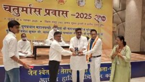 कोलकाता,युगप्रधान आचार्य श्री महाश्रमण जी के सुशिष्य मुनिश्री जिनेश कुमारजी ठाणा 3 के सानिध्य में पूर्वांचल तेरापंथ सभा कोलकाता द्वारा चातुर्मास कालीन किए गए प्रचार – प्रसार मीडिया आदि कार्यों हेतु सुरेन्द्र मुणोत को दीपावली स्नेह मिलन एवं सम्मान समारोह में सम्मानित किया गया।