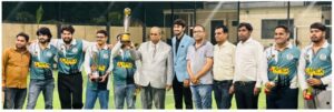 बिजयनगर,लियो क्लब बिजयनगर रॉयल के तत्वाधान में आयोजित लियो क्लब रॉयल प्रीमियर लीग SEASON 3 के दूसरे एवं अंतिम दिन फाइनल मुकाबले हुए। जिसमें मुख्य अतिथि के रूप में लॉयन राम किशोर गर्ग प्रान्तपाल 3233E2, सम्मानीय अतिथि प्रांतीय सचिव अशोक जैन, प्रांतीय कोषाध्यक्ष जे के जैन, लियो डिस्ट्रिक्ट प्रेसिडेंट 3233E2 शुभम चपलोत, समाजसेवी प्रकाशचंद संचेती मुंबई , लियो डिस्ट्रिक्ट कोऑर्डिनेटर अमित लोढ़ा, पूर्व प्रांतीय अध्यक्ष नवीन चोपड़ा,लियो कन्वीनर अनिल भंडारी सहित अतिथि मंचासिन रहे। सभी अतिथियों का शाल ,माला एवं साफा पहनाकर तथा स्मृति चिन्ह प्रदान कर सम्मान किया गया। लियो क्लब के मीडिया प्रभारी पवन बोहरा ने बताया कि L.C.R.P.L Session 3 दो दिवसीय बॉक्स क्रिकेट प्रतियोगिता नॉट आउट क्रिकेट ट्रफ़ में संपन्न हुई। रविवार शाम बहुत ही रोचक मुकाबले जिसमें एपेक्स वॉरियर्स और नवकार रॉयल्स के मध्य हुए फाइनल मुकाबले ने रोमांच की सभी हदें पार कर दी।जहां इस ट्रॉफी की प्रबल दावेदार टीम एपेक्स वॉरियर्स ने 8 ओवर में 4 विकेट खोकर मात्र 36 रन ही बना सकी। खिलाड़ी अमन जो अपनी धुआंधार बल्लेबाजी के लिए जाने जाते हैं वे फाइनल में मात्र 6 रन बनाकर आउट हो गए तो उसके पश्चात पीछे वाले बल्लेबाज भी दबाव में आ गए एक एक कर विकेट गिरते चले गए। बाद में खेलने का लक्ष्य लेकर उतरी नवकार रॉयल्स ने हाई वोल्टेज वाले मैच में अपने कैप्टन विपिन मेहता का विकेट खोकर दबाव में आ गई एपेक्स वॉरियर्स के बॉलर पवन बोहरा की घातक गेंदबाजी से पूरी टीम बिखर गई और रन चेंज नहीं कर सकी पवन बोहरा की धमाकेदार बोलिंग से एपेक्स वॉरियर्स 10 रन से विजई रही।और नवकार रॉयल्स को हराकर इस ट्रॉफी पर कब्जा जमा लिया।समापन समारोह में लॉयन राम किशोर गर्ग प्रान्तपाल महोदय के द्वारा विनर टीम को ट्रॉफी एवं रनर अप रहने वाली टीम को ट्रॉफी के साथ-साथ सभी खिलाड़ियो को ट्रॉफी एवं मोमेंट दिया गया और बेस्ट बैट्समैन अमित बडोला रहे। बेस्ट बॉलर पवन बोहरा रहे।अध्यक्ष अमित बडोला ने इस आयोजन को कल्पना से परे बताया जहां पूरे लियो क्लब रॉयल का बहुत ही सराहनीय योगदान रहा और कहा कि पूरी प्रांतीय टीम ने यहां आकर कार्यक्रम की शोभा बढ़ाई। संयोजक शुभम मुनोत्, शुभम छाजेड़, वैभव लोढ़ा ने बहुत ही सुंदर रूप से यह प्रतियोगिता का आयोजन करवाया। अंत में धन्यवाद देते हुए लियो क्लब बिजयनगर रॉयल के अध्यक्ष अमित बडोला सचिव मोहित पटौदी एवं कोषाध्यक्ष अंकित टोडरवाल ने ऐसे आयोजन आगामी समय में भी करवाने का पूरा आश्वासन दिया। मंच का संचालन लायन अमित लोढ़ा ने किया।