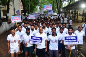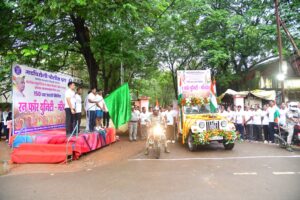 तृतीय स्थान: ₹2,000/- विजेताओं को पुलिस अधीक्षक श्री नीलोत्पल ने नकद पुरस्कार और प्रमाणपत्र प्रदान कर सम्मानित किया। सभी वरिष्ठ अधिकारियों को भी प्रमाणपत्र दिए गए। पुलिस अधिक्षक ने अपने संबोधन में श्री नीलोत्पल ने कहा कि यह मैराथन सिर्फ दौड़ नहीं बल्कि गडचिरोली के हर नागरिक के मन में ‘एक भारत, श्रेष्ठ भारत’ की भावना को मजबूत करने का माध्यम है। जिले के युवा और पुलिस बल एकजुट होकर सशक्त पीढ़ी का निर्माण कर रहे हैं।