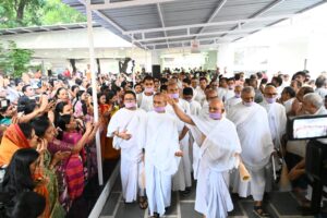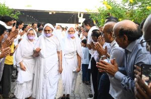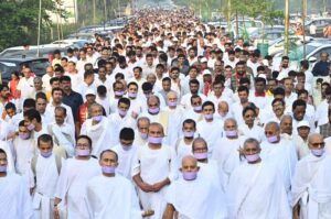 गांधीनगर (गुजरात) ,गुजरात की धरा पर लगातार दो चतुर्मास करने वाले जैन श्वेताम्बर तेरापंथ धर्मसंघ के ग्यारहवें अनुशास्ता, भगवान महावीर के प्रतिनिधि, अखण्ड परिव्राजक, युगप्रधान आचार्यश्री महाश्रमणजी अपनी धवल सेना के साथ गुरुवार को प्रातःकाल करीब साढे सात बजे के आसपास कोबा स्थित प्रेक्षा विश्व भारती से मंगल गतिमान हुए तो श्रीचरणों में अपनी श्रद्धाप्रणति अर्पित करने हेतु अहमदाबादवासी श्रद्धालुओं का ज्वार उमड़ पड़ा। हजारों सजल नेत्रों से छलकते अश्रु बूंद मानों साबरमती नदी के तट पर बसे शहर अहमदाबाद को भावनाओं के उमड़ते ज्वार में समाहित करने को तत्पर दिखाई दे रहे थे। जन-जन के मानस में बस एक ही अरदास उठ रही थी, हे आराध्य! हमें अनाथ ना बनाओ, थोड़ा और ठहर जाओ, किन्तु निस्पृह आचार्यश्री महाश्रमणजी जनकल्याण के लिए पुनः गतिमान हुए।सिल्क सिटि व डायमण्ड सिटि के रूप में विख्यात सूरत में वर्ष 2024 का चतुर्मास के उपरान्त लगभग सम्पूर्ण गुजरात की धरा को अध्यात्म की ज्ञानगंगा से अभिसिंचन प्रदान करने के उपरान्त 6 जुलाई को जैन श्वेताम्बर तेरापंथ धर्मसंघ के वर्तमान अधिशास्ता ने गुजरात की धरा पर लगातार दूसरा चतुर्मास के लिए अहमदाबाद के निकट कोबा में स्थित प्रेक्षा विश्व भारती में मंगल प्रवेश किया। चार महीनों तक साबरमती नदी के तट पर श्रीमुख से निरंतर प्रवाहित होने वाली आध्यात्मिक गंगा में डुबकी लगाने के लिए देश-विदेश से श्रद्धालु ही नहीं, राजनीति, लेखन, कला, फिल्म, चिकित्सा, शिक्षा, समाजसेवा, मीडिया व प्रशासन से जुड़े विशिष्ट लोग भी उपस्थित हुए। देश के गृहमंत्री श्री अमित शाह, से लेकर गुजरात के राज्यपाल आचार्यश्री देवव्रत, मुख्यमंत्री श्री भूपेन्द्र पटेल, गृहमंत्री श्री हर्ष संघवी के शिक्षामंत्री आदि-आदि अनेक केन्द्रीय व राज्यमंत्री उपस्थित हुए। वहीं फिल्मी जगत के अभिनेता संजय दत्त, विवेक ओबेराय आदि ने शांतिदूत के दर्शन का लाभ प्राप्त किया। इसके अलावा राष्ट्रीय स्वयं सेवक संघ के सरसंघचालक श्री मोहन भावगत, मुख्य सामाजिक कार्यकर्ता व वरिष्ठ पत्रकार श्री पुष्पेन्द्र कुलश्रेष्ठ, इंडिया टीवी के डायरेक्टर श्री रजत शर्मा आदि अनेक गणमान्यों ने अध्यात्म की गंगा में डुबकी लगाकर अपने मानस को पावन बनाया।गुरुवार को प्रातःकाल करीब साढे सात बजे प्रेक्षा विश्व भारती परिसर पूरी तरह जनाकीर्ण बना हुआ था। श्रद्धालुओं के उमड़ती संख्या से भी भारी नजर आ रही थी उनके हृदय में उमड़ती श्रद्धा, आस्था व विश्वास रूपी भावात्मक ज्वार। यह ज्वार अपने आराध्य के प्रस्थान को मानों रोकने का पूर्ण प्रयास कर रही थी। हजारों-हजारों नेत्र सजल थे, कंठ अवरुद्ध थे तो दोनों हाथ श्रद्धा से जुड़े हुए थे। मुख मौन थे, मानो
