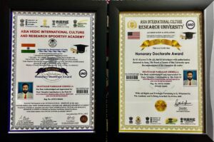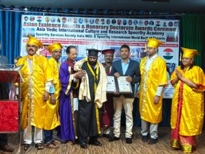 हैदराबाद,तेलंगाना राज्य के एसिया वेदिक इंटरनेशनल कल्चर एंड रिसर्च स्पूर्ति सर्विस एकेडमी सर्विस सोसायटी इंडिया एन. जी. ओ. एंड इंटरनेशनल वाल्ड बुक ऑफ रिकॉर्ड्स एशिया वेदिक इंटरनेशनल कल्चर एंड रिसर्च यूनिवर्सिटी (यू.एस. ए. ) अप्रूव्ड बाई गवर्नमेंट ऑफ इंडिया द्वारा नवंबर 5 बुधवार को हैदराबाद आर. टी. सी.एक्सरोड सिटी कल्चर ऑडिटोरियम में शाम 5 बजे से रात 10 बजे तक की गई आयोजित कार्यक्रम में सत्कार मूर्तियो में से महाराष्ट्र चंद्रपुर जिला के की लाइन टाइम्स न्यूज चैनल के चंद्रपुर जिला रिपोर्टर तथा महाराष्ट्र पत्रकार संघ शाखा बल्लारपुर क्षेत्र के उपाध्यक्ष न्यू दिल्ली आर.एन.आई.नंबर दिल्ली इन 2017/72528 को की गई आयोजित राष्ट्रीय डॉक्टरेट उपाधि से तेलंगाना राज्य के हैदराबाद में सम्मान पूर्वक सम्मानित किया गया है.