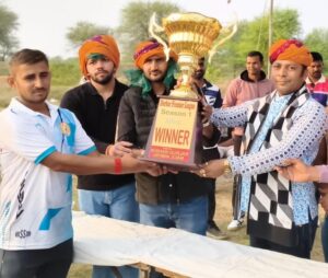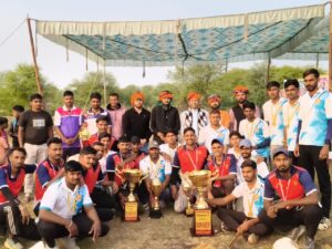 बिजयनगर,दरबार प्रीमियर लीग सीजन 1 बडा आसन बिजयनगर मे क्रिकेट प्रतियोगिता के फाइनल के मुख्य अतिथि पूर्व जिला कोषाध्यक्ष भाजपा अजमेर देहात आशीष सांड रहे ।अनिल गुजर,रामदेव गुजर,अमित बडोला ने अध्यक्षता करी।सीजन फर्स्ट का फाइनल मैच वीर तेजा क्लब और रॉयल चैलेंजर के बीच खेला गया ! रॉयल चैलेंजर द्वारा पहले बल्लेबाजी करते हुए 74 रन बनाये ! वीर तेजा क्लब ने टारगेट चेंज करते हुए 7.3 ऑवर मे ही 75 रन बना लिये ! इस अवसर पर आशीष सांड द्वारा सभी खिलाड़ियों को बधाई देते हुए कहा कि जीत हार खेल के दो पहलू होते हैं खेल को सदैव खेल की भावना से ही खेलना चाहिए! खेल में हर भी जाओ तो कभी गम ना करो फिर से खेलो मगर कभी अपना हौसला कम नही करो ! इस अवसर पर टूर्नामेंट आयोजक किशन गुर्जर लक्की पांचाल डीसी गुर्जर प्रहलाद गुर्जर महाराम जी प्रदीप जाट साजन प्रकाश जगा आदि मौजूद थे।