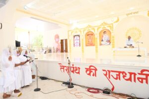 आचार्यश्री के स्वागत एवं अभ्यर्थना का क्रम आज भी अनवरत जारी रहा। इस आयोजन में हनुमानगढ़ टाउन में चतुर्मास कर गुरु सन्निधि में पहुंची साध्वी सूरजप्रभाजी ने गुरुदर्शन से प्राप्त आह्लादित भावों को अभिव्यक्ति देते हुए अपनी सहवर्ती साध्वियों के साथ गीत का संगान किया। ऊर्जा कांटेड़ ने पारमार्थिक शिक्षण संस्था में प्रवेश से पूर्व आचर्यश्री से मंगलपाठ का श्रवण किया। जैन विश्व भारती के मंत्री श्री सलिल लोढ़ा ने आचार्यश्री की सन्निधि में प्रारम्भ हो रहे चित्त समाधि शिविर के संदर्भ में जानकारी दी।