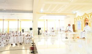 लाडनूं, डीडवाना-कुचामन (राजस्थान) ,योगक्षेम वर्ष के दौरान नित्य प्रातःकालीन मुख्य प्रवचन कार्यक्रम का शुभारम्भ युगप्रधान अनुशास्ता आचार्यश्री महाश्रमणजी के मंगल महामंत्रोच्चार के साथ हुआ। तदुपरान्त साध्वीवृंद ने प्रज्ञा गीत का संगान किया।