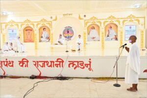 लाडनूं,अहिंसा यात्रा द्वारा नेपाल, भूटान सहित भारत के 21 राज्यों की यात्रा कर अहिंसा की नव चेतना का जागरण करने वाले शांतिदूत आचार्य श्री महाश्रमण जी के पावन सान्निध्य से प्राचीन चंदेरी नाम से विख्यात लाडनूं नगर आध्यात्मिक आभा को प्राप्त कर रहा है। योगक्षेम वर्ष के संदर्भ में नित्य नवीन विषयों पर आचार्य प्रवर द्वारा उद्बोधन, प्रशिक्षण प्राप्त कर साधु साध्वियों के साथ साथ श्रावक समाज भी आगम शास्त्रों के गूढ़ सूत्रों को गुरूदेव द्वारा की जाने वाली सरल व्याख्या से आत्मसात कर रहा है। सुधर्मा सभा में मुख्य प्रवचन कार्यक्रम के साथ साथ दिनभर में विभिन्न विषयों पर होने वाली कक्षाएं, सेमिनार भी आकर्षण का केंद्र बने हुए है।