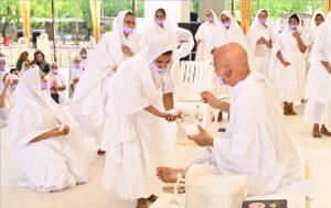 अपने आराध्य के प्रति अगाध गुरुभक्ति का यह क्रम आज प्रभात में ब्रह्म मुहूर्त से ही मंगल अभिनन्दन के साथ प्रारंभ हो गया था। तत्पश्चात, सूर्योदय की प्रथम रश्मियों के साथ साध्वी प्रमुखा विश्रुतविभा जी सहित साध्वी समुदाय विशाल सुधर्मा सभा में गुरु सन्निधि में उपस्थित हुईं। इस अत्यंत भक्तिमय और नयनाभिराम दृश्य के बीच उपस्थित चारित्रआत्माओं द्वारा आचार्य प्रवर एवं साध्वी प्रमुखा जी के श्रीचरणों में भावपूर्ण अभ्यर्थना की गई।